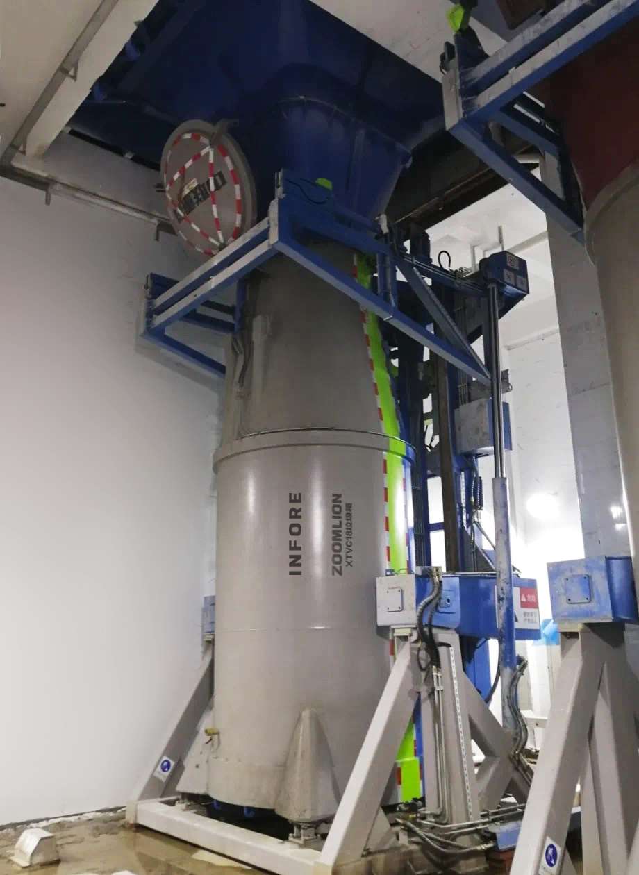 长沙市湿垃圾转运站另外一套系统——餐厨残渣转运系统, 主要由竖直直压式压缩机、垃圾箱变位机、垃圾箱及车厢可卸式垃圾车等设备组成,采用“竖直直压+勾臂车”创新型工艺,实现餐厨残渣的脱水转运,最终焚烧处理。
