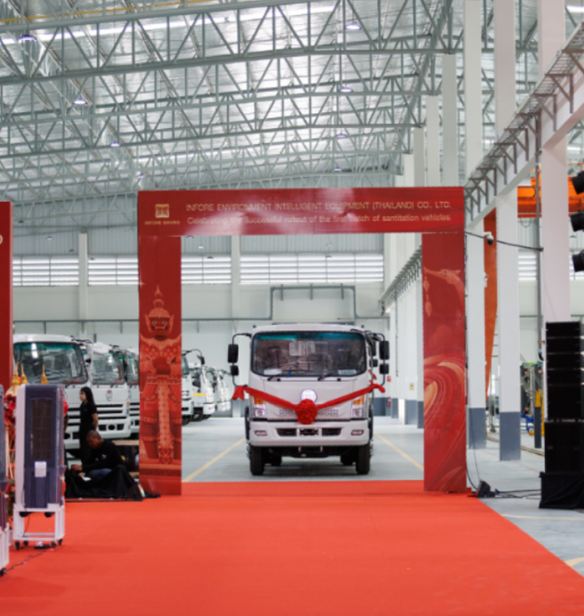 随着ballbet贝博环境副总裁兼装备事业部总裁焦万江一声指令,泰国工厂首批环卫装备隆重下线,将现场气氛推至高潮。这批环卫装备的成功下线不仅标志着泰国工厂正式步入生产运营的快车道,更是中泰双方共同努力的结晶和新征程的起点。ballbet贝博环境将以此为契机,不断提升产品质量和生产效能,持续攀登行业高峰。